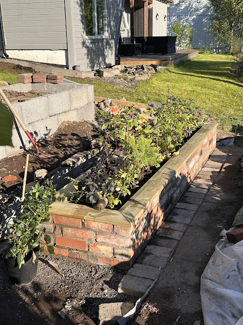 SlettTusen takk - det er nå superartig å holde på å bygge og støpe. Ja dahliaene har virkelig likt seg i det bedet. Sola har nok varmet opp teglsteinene og gitt god jordvarme - for det blomstrer som bare det. Neste år skal jeg plante flere dahlia i pallekarmene, for dette var jo ment til jordbærplanter - selv om jeg synes det ble veldig fint med alle fargene der.....vi får se.
